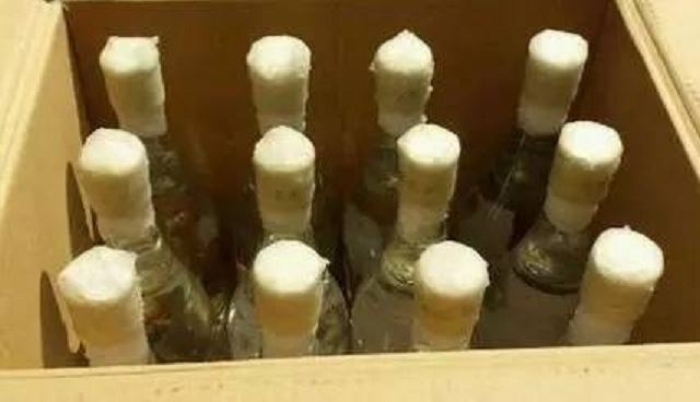 另外,在保存白酒的時候,也不需要特別用心地去折騰它,保鮮膜、膠布、封蠟啊,反而會弄巧成拙。帶膜的,容易把膜弄壞;鐵蓋鋁蓋的,會加重腐蝕。在這里特別要提醒大家的是,保鮮膜千萬不要直接裹在鐵蓋鋁蓋上,這樣有時幾個月時間就會腐蝕、掉漆。